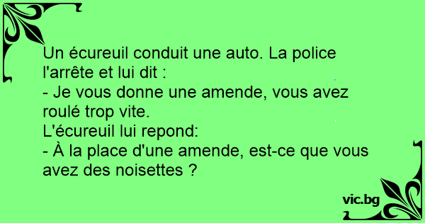 Un écureuil conduit une auto. La police l'arrête et lui dit :