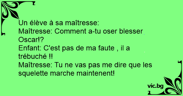 Maîtresse: Tu ne vas pas me dire que les squelette marche maintenent!
