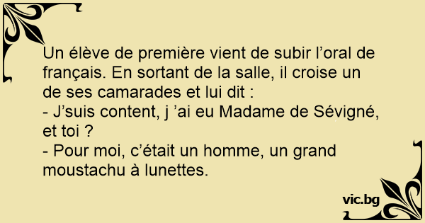Un élève de première vient de subir l’оrаl de français. En sortant de la salle, il croise un de ses camarades et lui dit :
