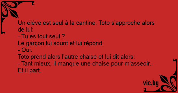 Un élève est seul à la cantine. Toto s'approche alors de lui: