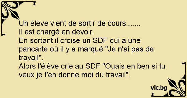 Alors l'élève crie au SDF "Ouais en ben si tu veux je t'en donne moi du travail".