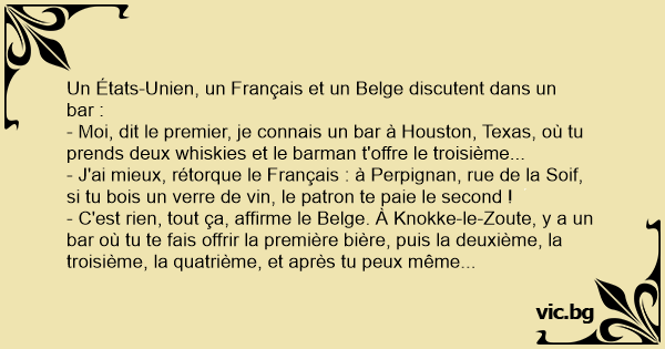 Un Anglais, un Américain et un Belge sont dans un bar à Paris.
