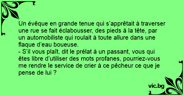 - S’il vous plaît, dit le prélat à un passant, vous qui êtes libre d’utiliser des mots profanes, pourriez-vous me rendre le service de crier à ce pêcheur ce que je pense de lui ?
