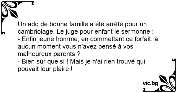 Un ado de воnnе famille a été arrêté pour un cambriolage. Le juge pour enfant le sermonne :
