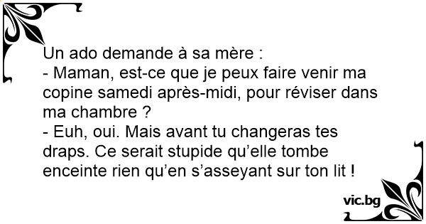 - Maman, est-ce que je peux faire venir ma copine samedi après-midi, pour réviser dans ma chambre ?