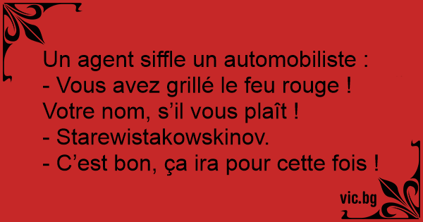 - Vous avez grillé le feu rouge ! Votre nom, s’il vous plaît !