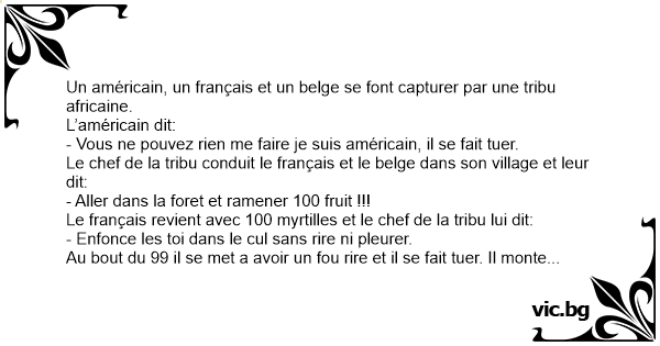Le français revient avec 100 myrtilles et le chef de la tribu lui dit: