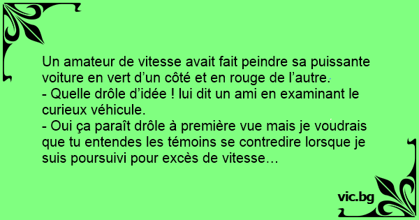- Oui ça paraît drôle à première vue mais je voudrais que tu entendes les témoins se contredire lorsque je suis poursuivi pour excès de vitesse…