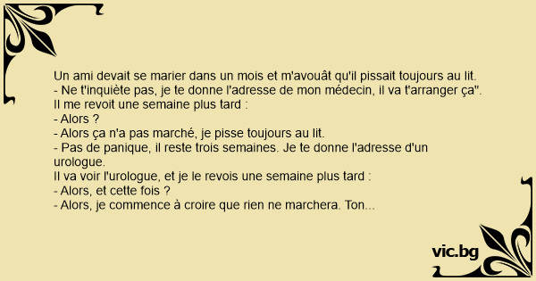 Un ami devait se marier dans un mois et m'avouât qu'il pissait toujours au lit.