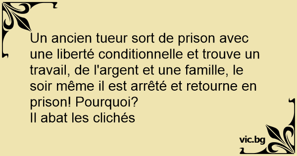 Un ancien tueur sort de prison avec une liberté conditionnelle et trouve un travail, de l'argent et une famille, le soir même il est arrêté et retourne en prison! Pourquoi?