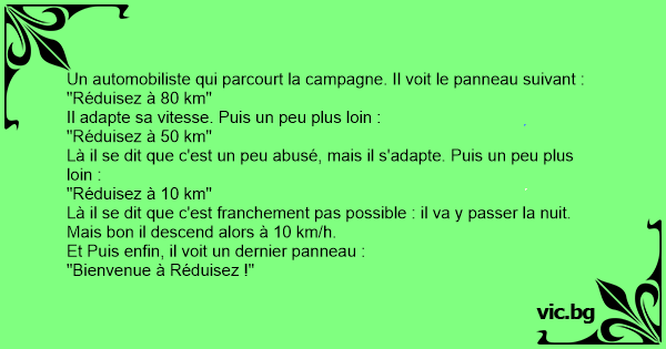 Un automobiliste qui parcourt la campagne. Il voit le panneau suivant :