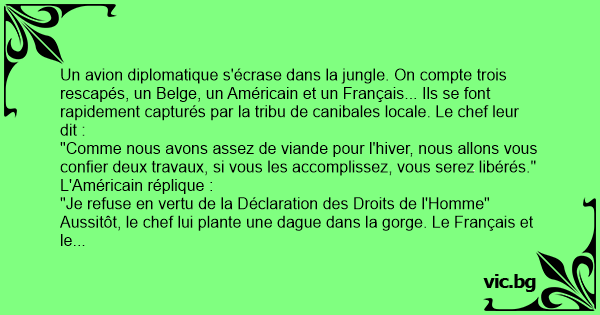 Depois de um acidente de Helicoptero três caras caem em uma ilha de canibais. O chefe vendo aqueles três intrusos retruca: — Vocês serão nosso jantar! O 1° que era o Brasileiro sacana fala: — Pô...