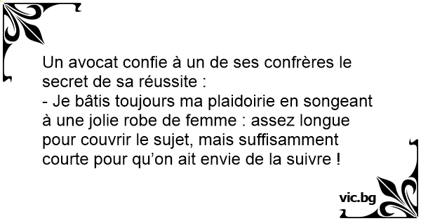 Un avocat confie à un de ses confrères le secret de sa réussite :