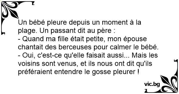 Un bébé pleure depuis un moment à la plage. Un passant dit au père :