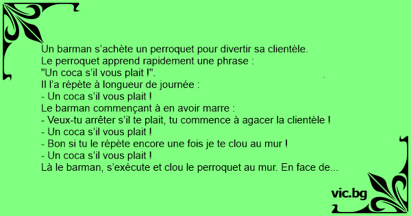 Un barman s’achète un perroquet pour divertir sa clientèle.