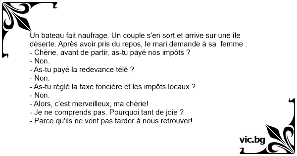 - Chérie, avant de partir, as-tu payé nos impôts ?