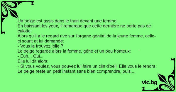 Le belge reste un petit instant sans bien comprendre, puis, décide de faire un petit clignement de l'oeil au vagin de la jeune femme.