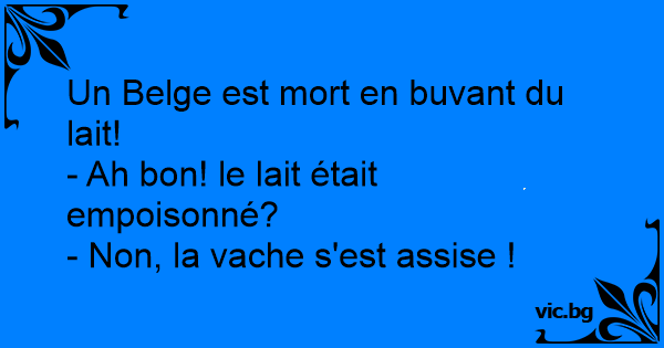 Heb je het laatste nieuws al gehoord? Er is een Belg gestorven tijdens het drinken van melk! De koe ging zitten...
