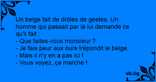 Un belge fait de drôles de gestes. Un homme qui passait par là lui demande ce qu'il fait :