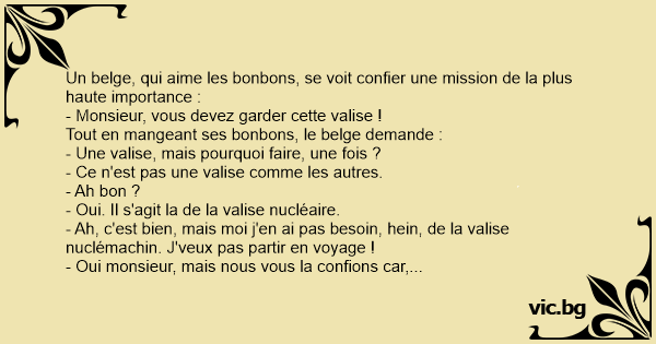 Et le belge s'en va avec la valise, et la clé dans la poche, tout en mangeant ses Haribo®.