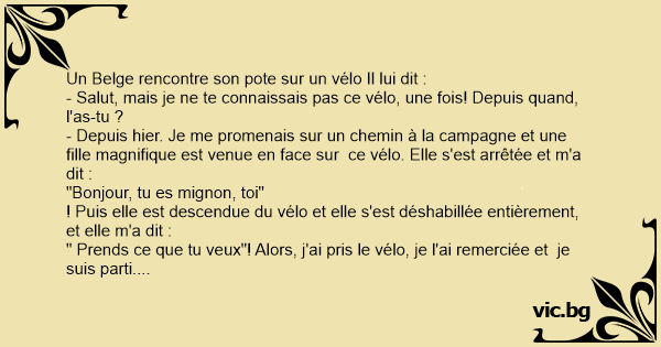 Un Belge rencontre son pote sur un vélo Il lui dit :