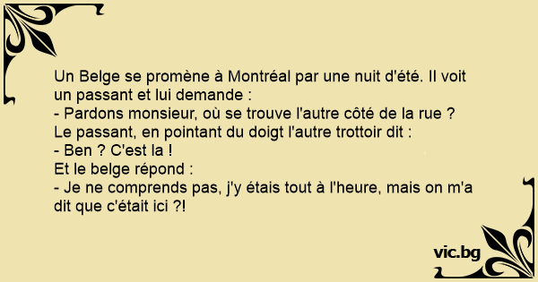 Un Belge se promène à Montréal par une nuit d'été. Il voit un passant et lui demande :