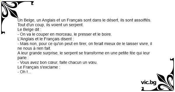 Un Belge, un Anglais et un Français sont dans le désert, ils sont assoiffés.
