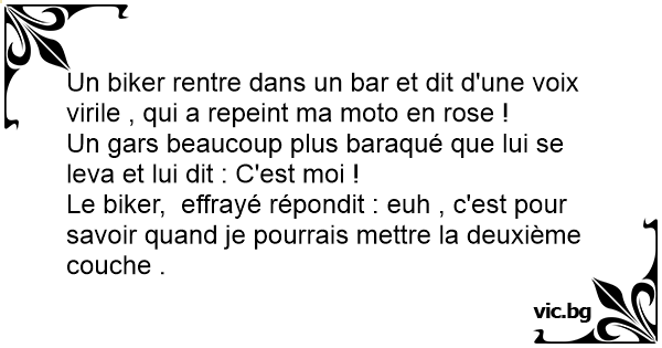 Un biker rentre dans un bar et dit d'une voix virile , qui a repeint ma moto en rose !