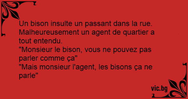 "Mais monsieur l'agent, les bisons ça ne parle"