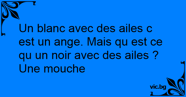 Un blanc avec des ailes c est un ange. Mais qu est ce qu un noir avec des ailes ?