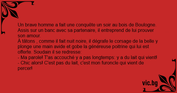 Un brave homme a fait une conquête un soir au bois de Boulogne.