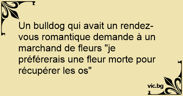 Un bulldog qui avait un rendez-vous romantique demande à un marchand de fleurs "je préférerais une fleur morte pour récupérer les os"