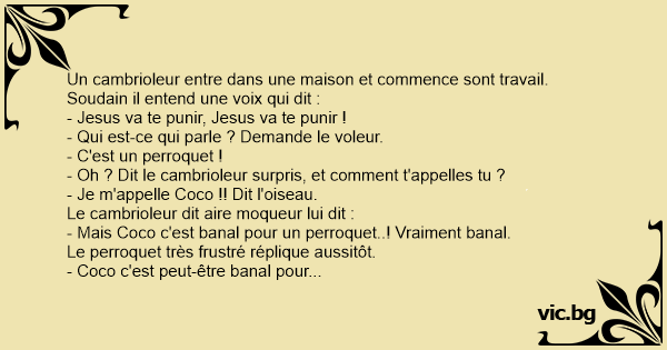 - Mais Coco c'est banal pour un perroquet..! Vraiment banal.