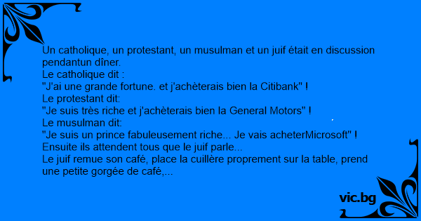Un catholique, un protestant, un musulman et un juif était en discussion pendantun dîner.