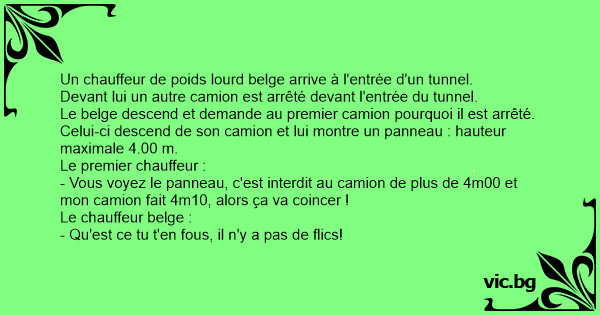 - Vous voyez le panneau, c'est interdit au camion de plus de 4m00 et mon camion fait 4m10, alors ça va coincer !