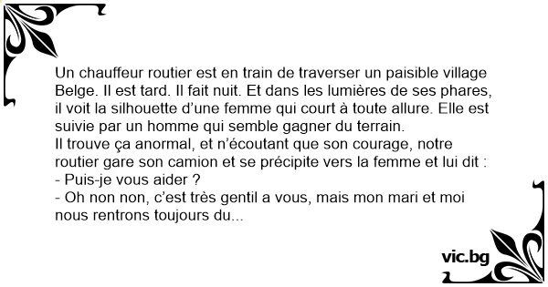 Il trouve ça anormal, et n’écoutant que son courage, notre routier gare son camion et se précipite vers la femme et lui dit :