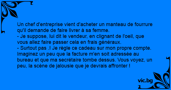 Un chef d'entreprise vient d'acheter un manteau de fourrure qu'il demande de faire livrer à sa femme.