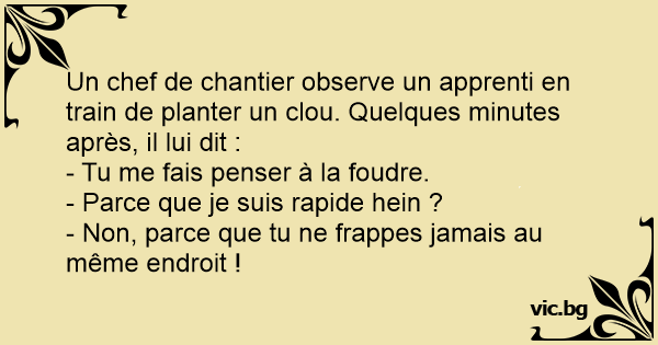 Un chef de chantier observe un apprenti en train de planter un clou. Quelques minutes après, il lui dit :
