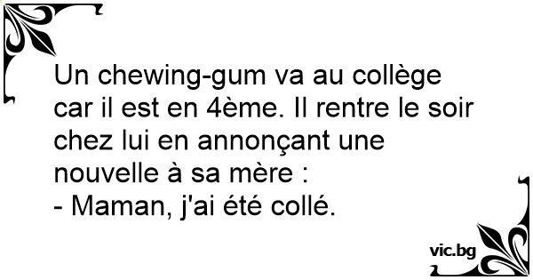 Un chewing-gum va au collège car il est en 4ème. Il rentre le soir chez lui en annonçant une nouvelle à sa mère :