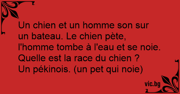 Un chien et un homme son sur un bateau. Le chien pète, l'homme tombe à l'eau et se noie. Quelle est la race du chien ?