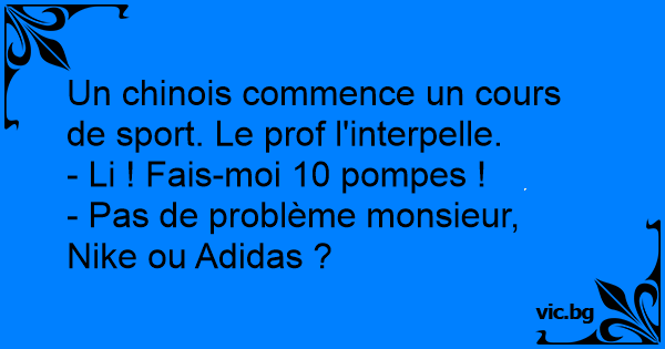 Un chinois commence un cours de sport. Le prof l'interpelle.