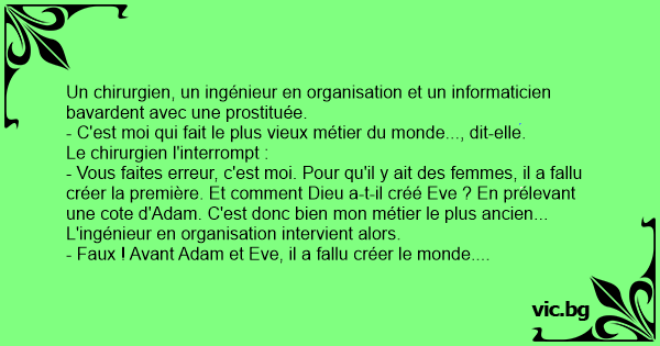 Un chirurgien, un ingénieur en organisation et un informaticien bavardent avec une prostituée.