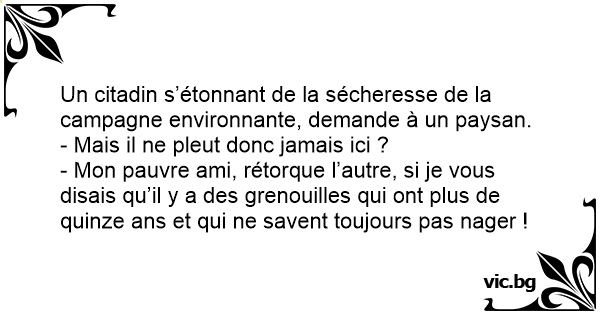 - Mon pauvre ami, rétorque l’autre, si je vous disais qu’il y a des grenouilles qui ont plus de quinze ans et qui ne savent toujours pas nager !