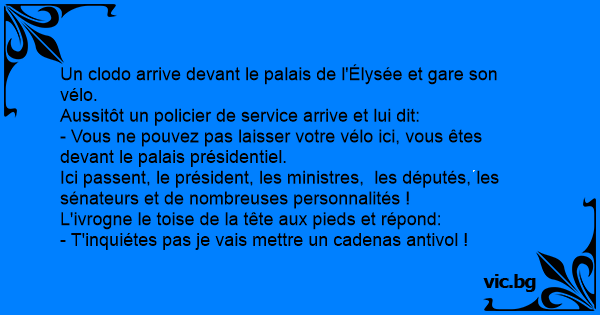 - Vous ne pouvez pas laisser votre vélo ici, vous êtes devant le palais présidentiel.