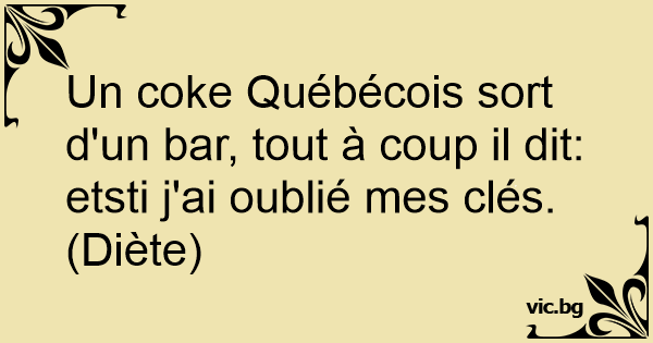Un coke Québécois sort d'un bar, tout à coup il dit: etsti j'ai oublié mes clés. (Diète)
