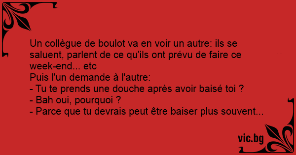 - Еј, батка, дали ти се тушираш после секс? - Па да, се разбира. - Па зашто тогаш не е*еш почесто, пријателе!