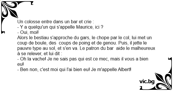 - Ben non, c'est moi qui l'ai bien eu! Je m'appelle Albert!