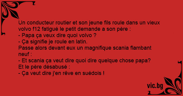 Un conducteur routier et son jeune fils roule dans un vieux volvo f12 fatigué le petit demande a son père :