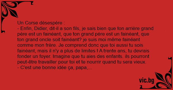 - Enfin, Didier, dit-il a son fils, je sais bien que ton arrière grand père est un fainéant, que ton grand père est un fainéant, que ton grand oncle soit fainéant? je suis moi même fainéant comme mon frère. Je comprend donc que toi aussi tu sois fainéant, mais il n'y a plus de limites ! A trente ans, tu devrais fonder un foyer. Imagine que tu aies des enfants. ils pourront peut-être travailler pour toi et te nourrir quand tu sera vieux.