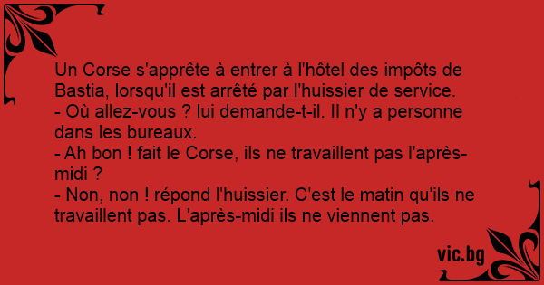 - Ah bon ! fait le Corse, ils ne travaillent pas l'après-midi ?